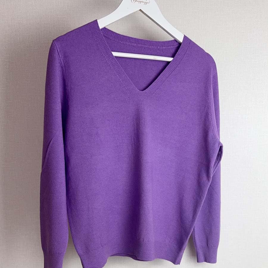 - 【パープル】薄手Vネックニット