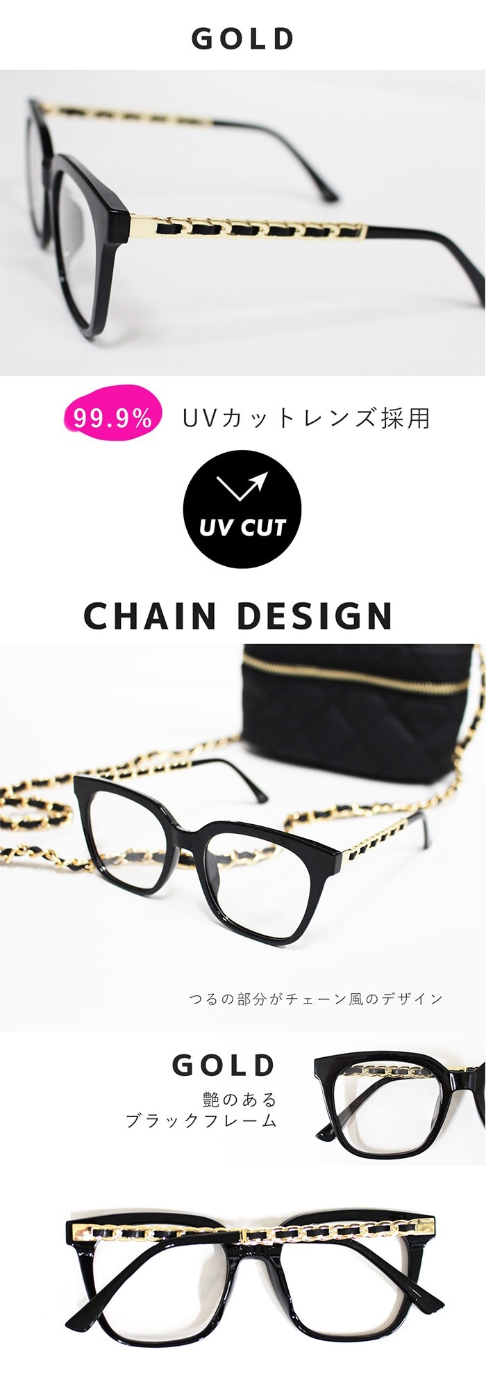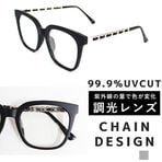 【調光レンズ】ゴールドチェーンデザイン サングラス ウェリントン | 紫外線の量でレンズのカラーが変化!紫外線の多い場所ではサングラス、室内ではクリアレンズ