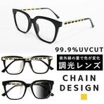 【調光レンズ】シルバーチェーンデザイン サングラス ウェリントン | 紫外線の量でレンズのカラーが変化!紫外線の多い場所ではサングラス、室内ではクリアレンズ