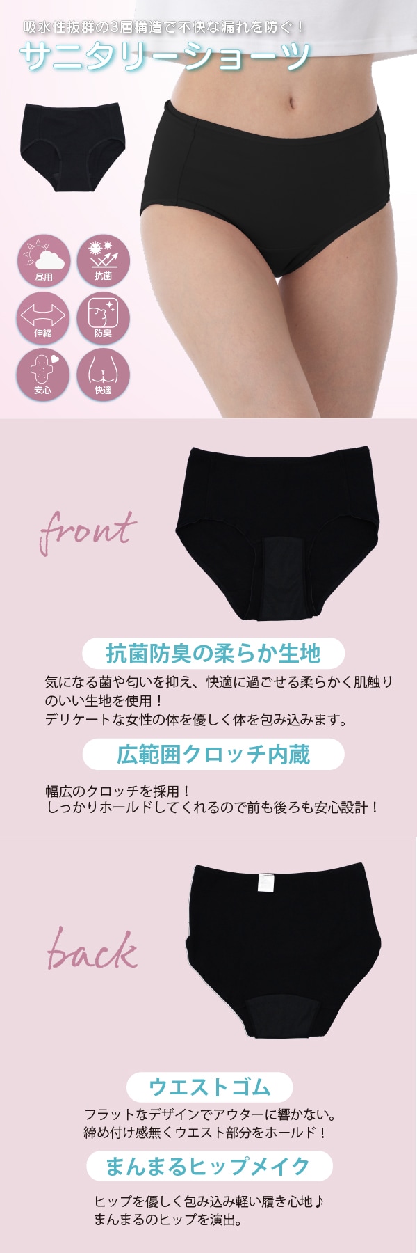 【ブラック/S-M】エアーフィットサニタリーハイウエストショーツ | 履くだけで瞬間美尻