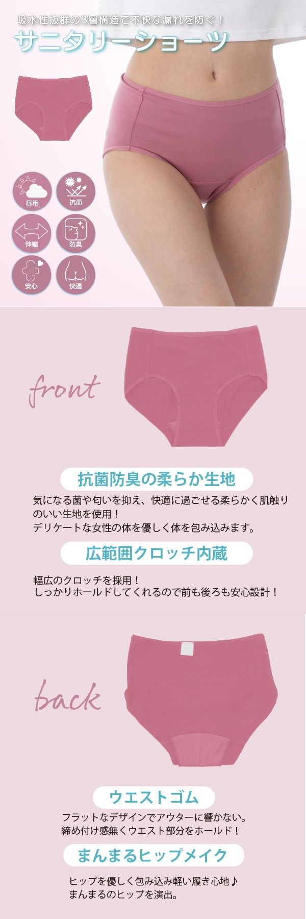 【ピンク/S-M】エアーフィットサニタリーハイウエストショーツ | 履くだけで瞬間美尻