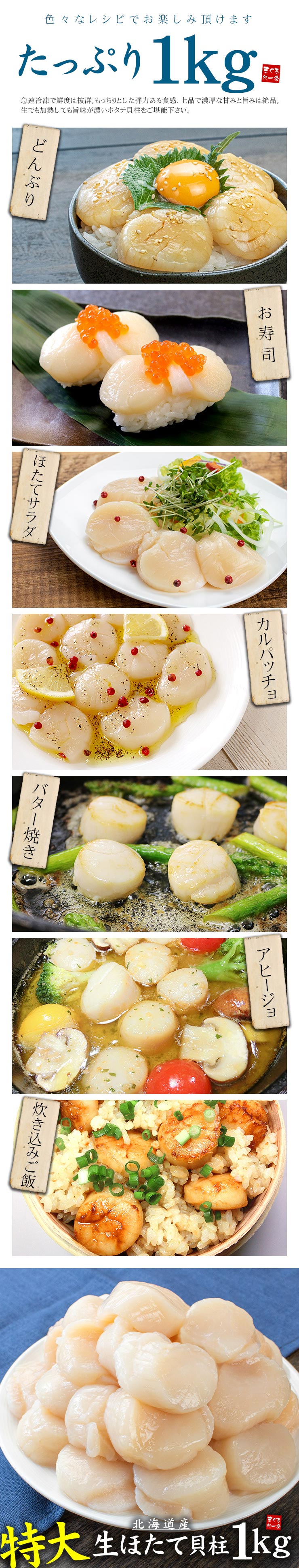 - 【1kg】特大サイズ 生ほたて貝柱 北海道産 25-40玉入[[特大ホタテ1kg]