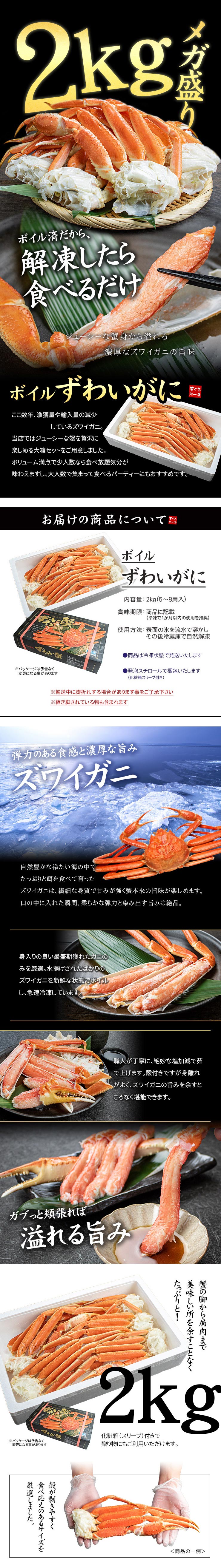 - 【2kg】ボイルズワイ蟹脚(5~8肩入)ずわいがに [[ボイルズワイ蟹脚2kg]