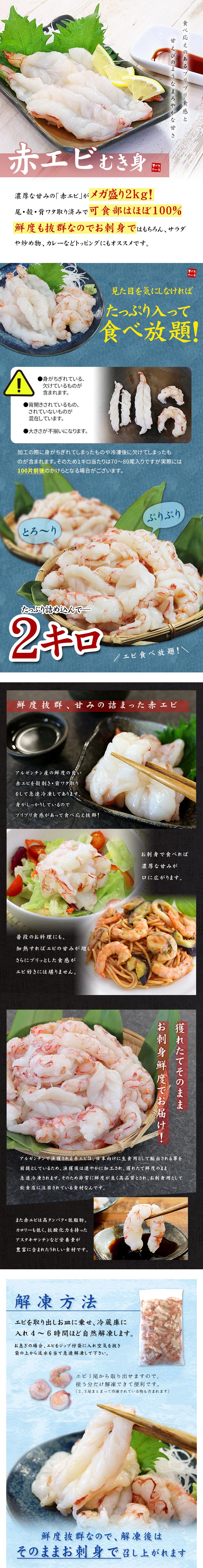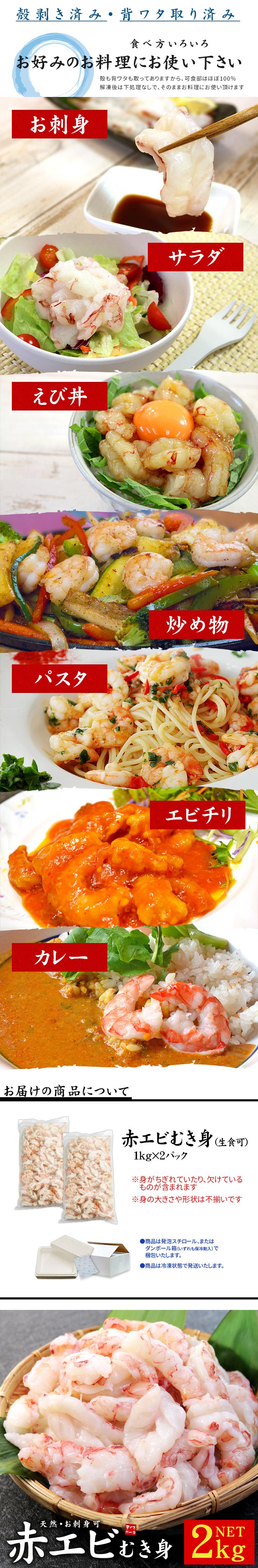 【2kg】天然赤エビむき身 生食OK サイズ不揃い [[赤エビ剥き身1kg-2p] | お刺身OK!解凍後すぐ食べられる