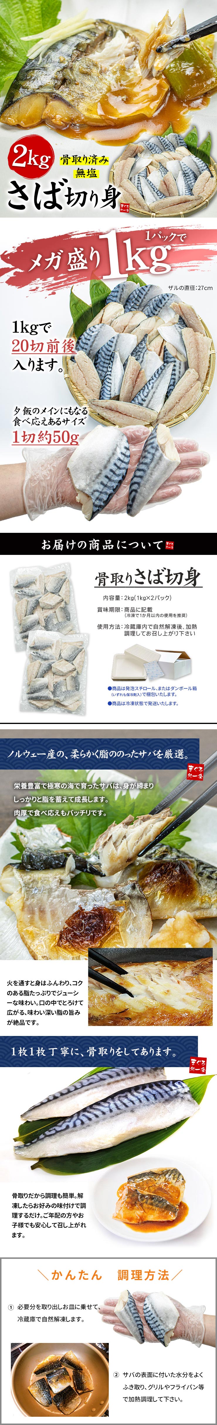 - 【2kg(40切前後)】骨取りさば切り身 無塩 加熱用 [[さば骨取り切り身1kg-2p]