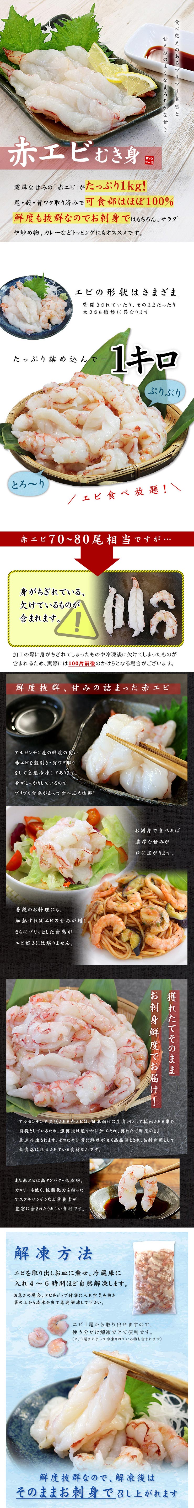 - 【1kg】天然赤エビ(ムキエビ) むき身(殻剥き、背ワタ取り...