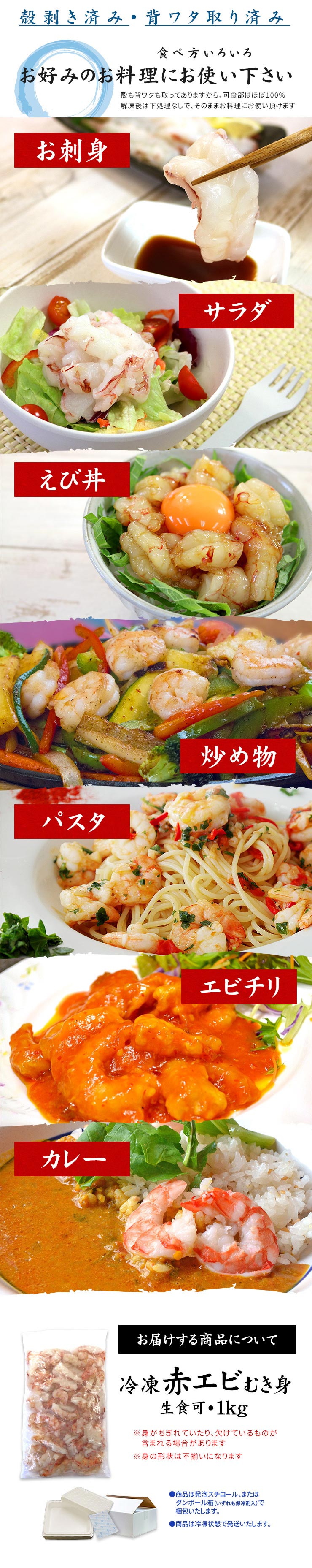 【1kg】天然赤エビ(ムキエビ) むき身(殻剥き、背ワタ取り済)[[赤エビ剥き身1kg] | お刺身鮮度でぷりっぷり! 解凍後すぐ食べられる!