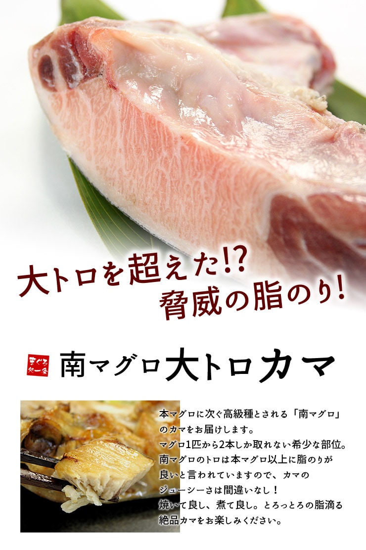 マグロの高級種、南マグロのカマをずっしり2キロ!他の鮪のカマとは比較にならないしたたるほどの脂のり♪塩焼き・煮付けがおススメ!