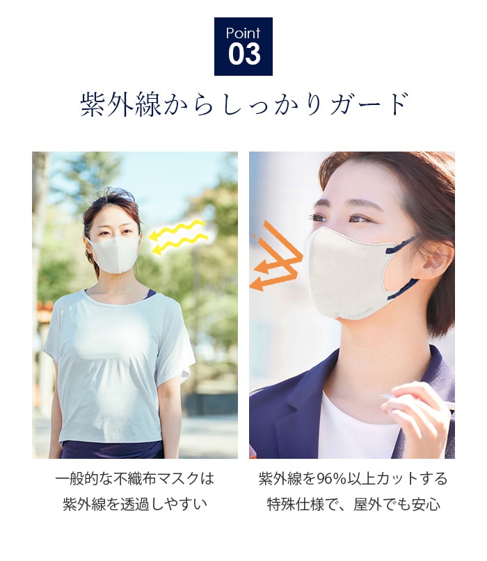 一般的な不織布マスクは紫外線を透過視させやすく、マスクの上からでも日焼けしてしまいます。