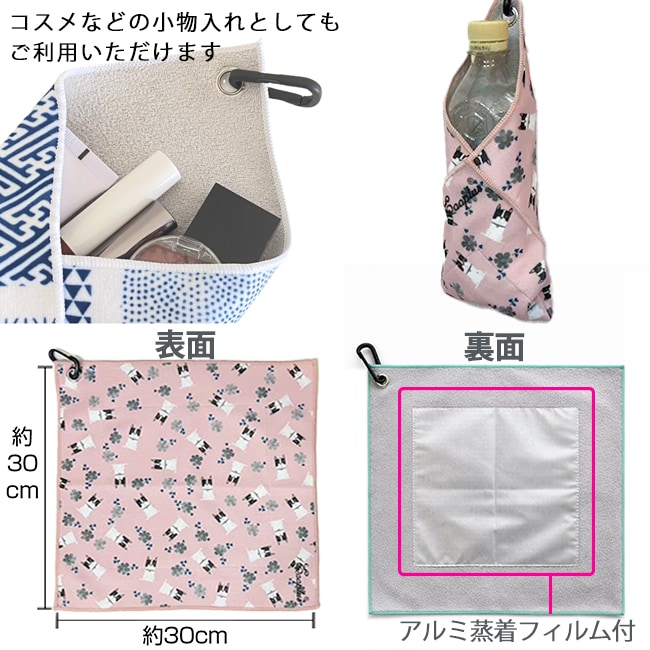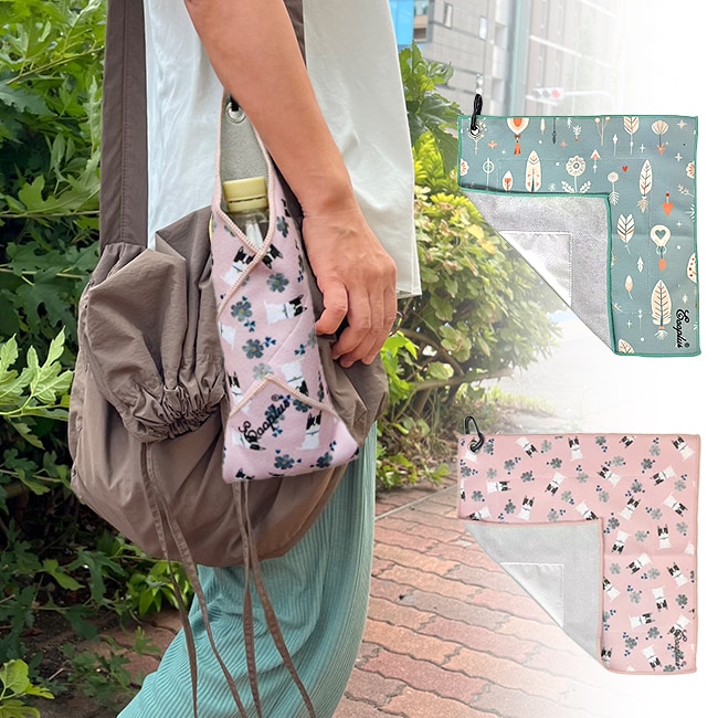 【犬と花】カラビナ付きくっつく保冷クロス | 結ばず留まる。アルミフィルムで保冷も保温もプラス!