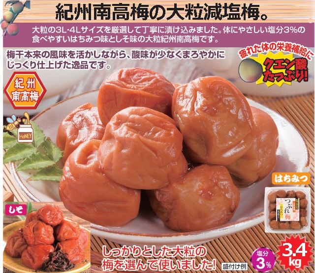 - 【3.4kg】紀州南高梅つぶれ梅 塩分約3% はちみつ味