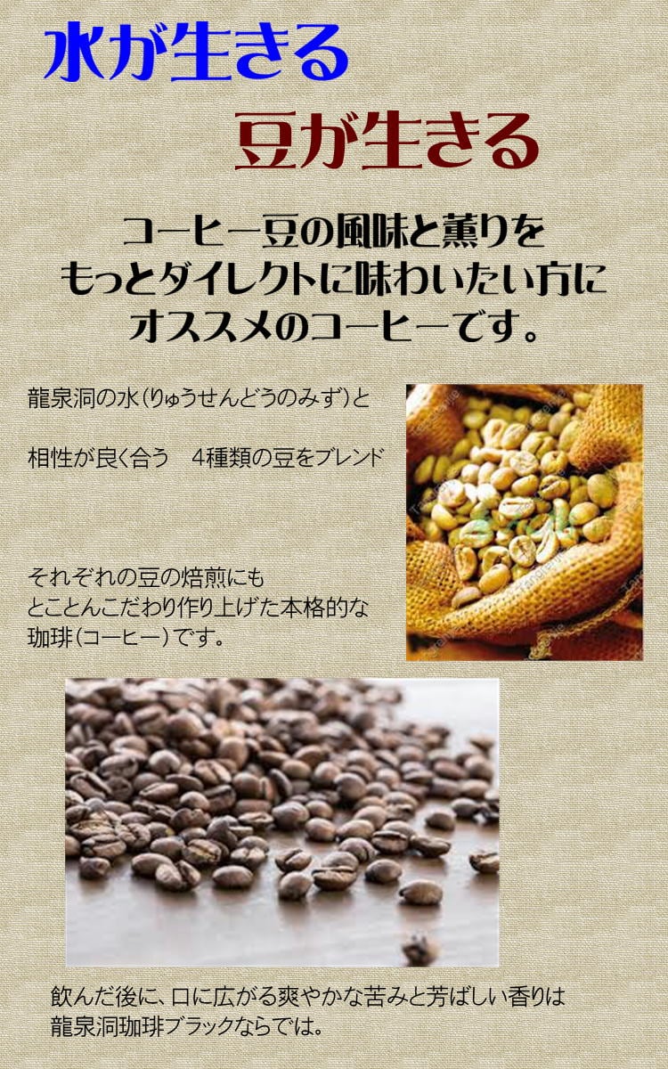【190g×30本】龍泉洞珈琲ブラックコーヒー(無糖) 龍泉洞の水と相性の良いコーヒー豆をブレンド | 日本名水百選『龍泉洞の水』を珈琲の抽出に使用。こだわりの手焼き焙煎。無香料