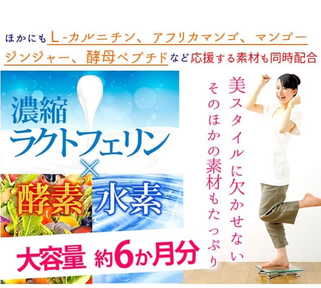 「ラクトフェリン」と236種類の野菜、果実、野草、海藻などの「酵素」、さらに水素を配合