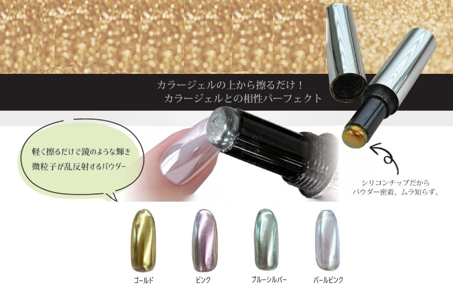 下地のネイルの色によっても、ミラーの雰囲気変わったり、全体使いや、部分的にミラー化をしてもおしゃれに、ご使用頂けます。