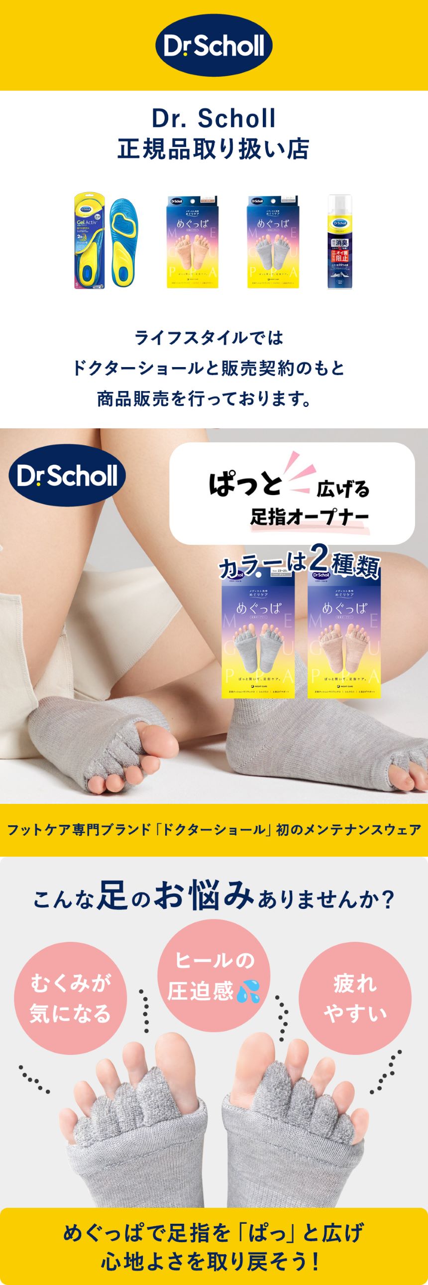 【日替わり数量限定】【ピンク/2個セット】ドクターショール Dr.Scholl めぐっぱ足指オープナー | 靴の中で縮こまった足指をぎゅっと開いてリラックス