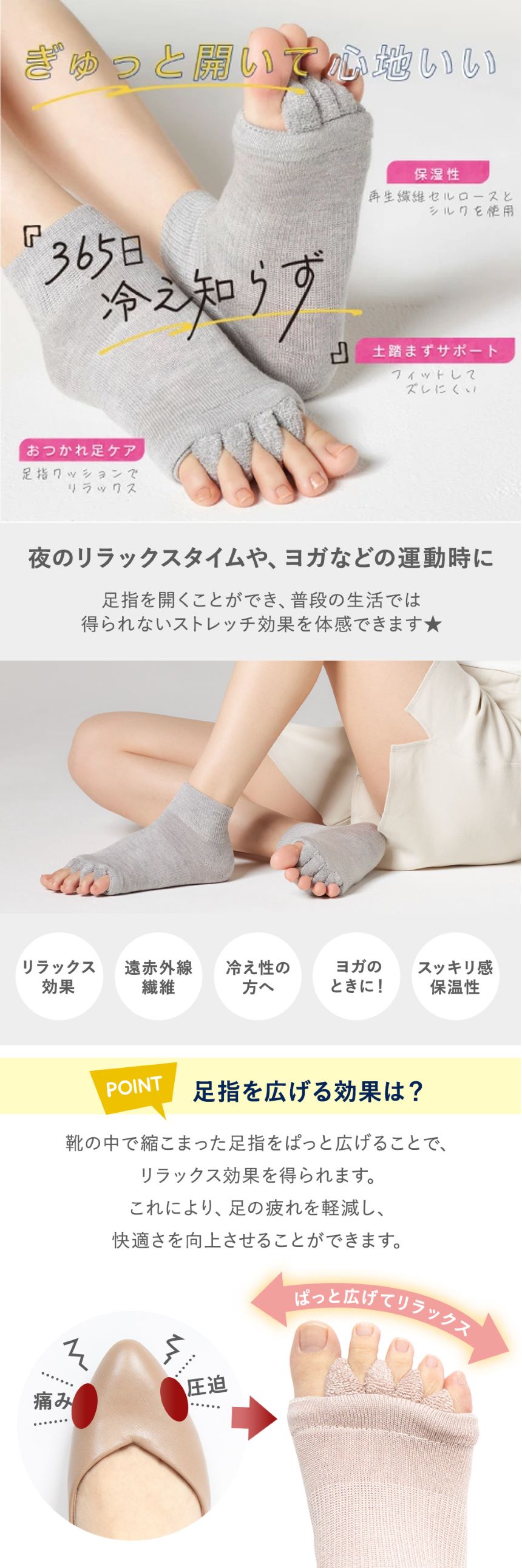 ちぢこまった足指をぎゅっと開いてリラックス・フワフワな生地の足指クッション・土踏まずサポート