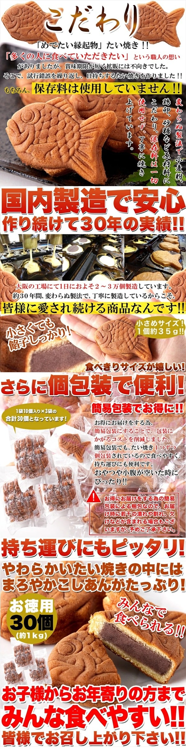 - 【30個】やわらかミニたい焼き(個包装10個入り×3袋)