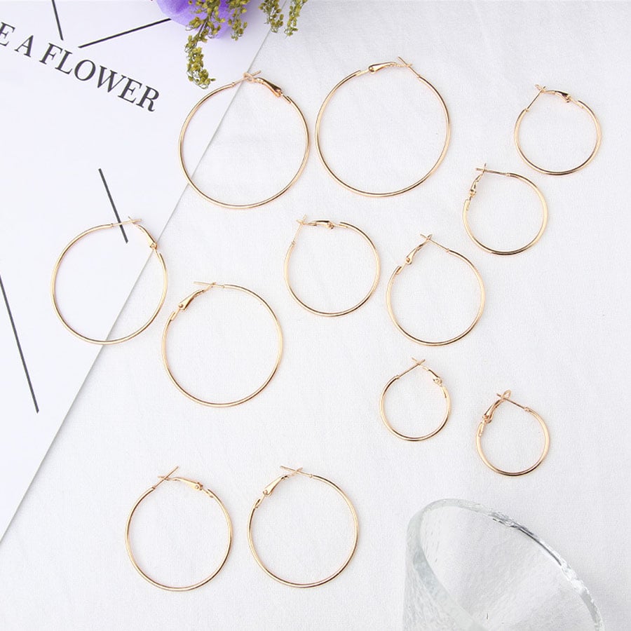 シンプルなデザインが大人女性らしい上品でシンプル フープピアス 6点セット。