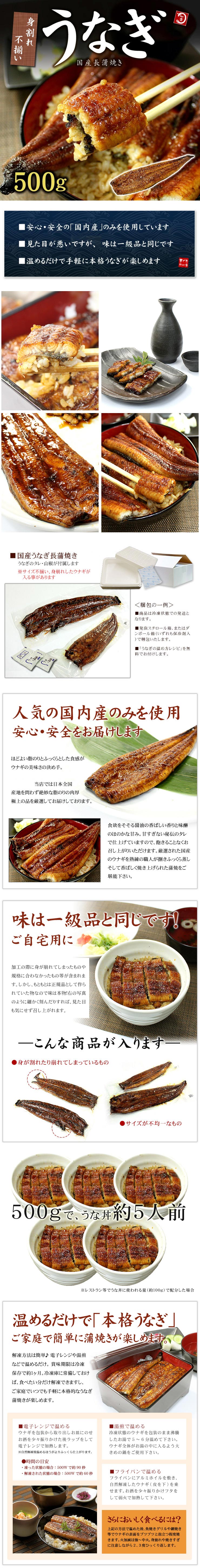 - 【500g】国産 うなぎ長蒲焼き 身割れ・不揃い かばやき 海鮮 [[ウナギ蒲焼き500g]