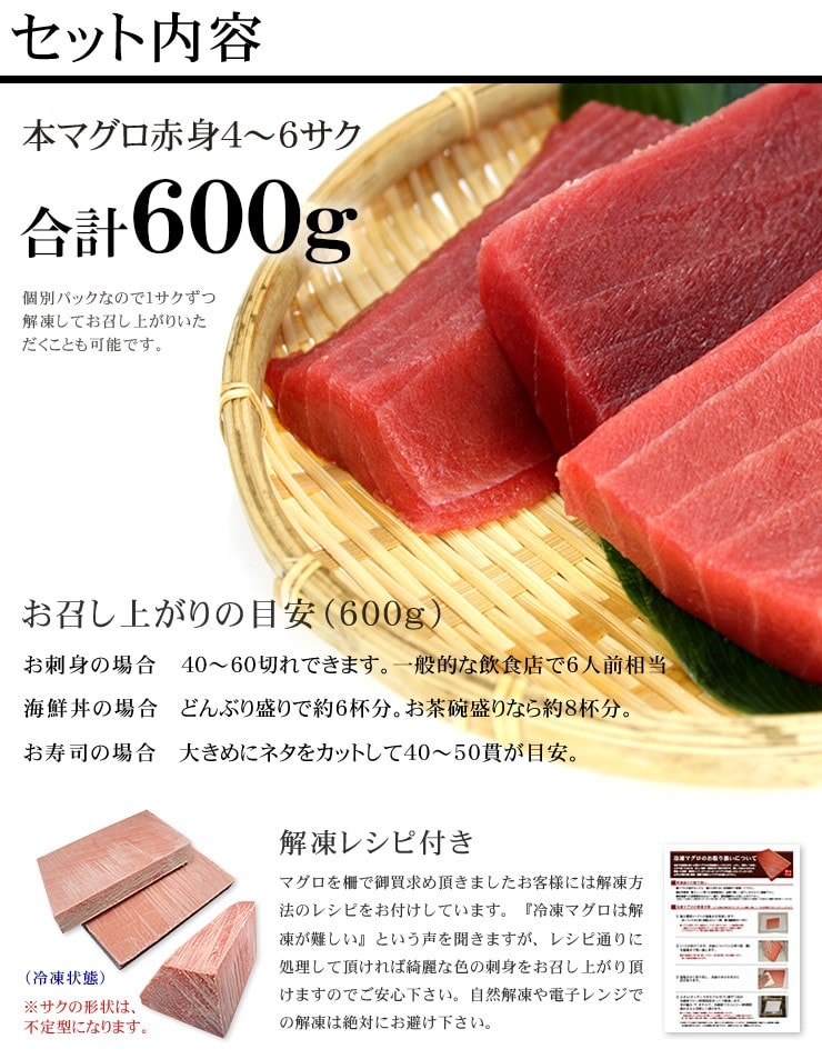 - 【600g】本マグロ赤身 解凍レシピ付 刺身 海鮮[[赤身300g-2p]
