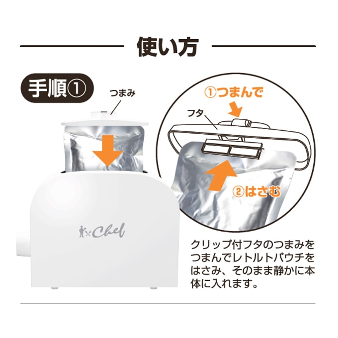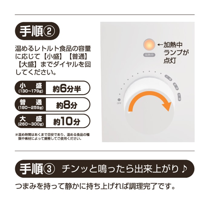 とにかく簡単!レトルトパウチ食品を入れてダイヤルを回すだけ!
