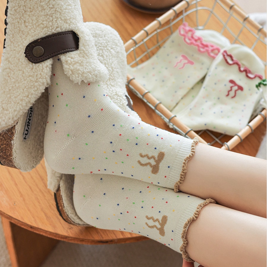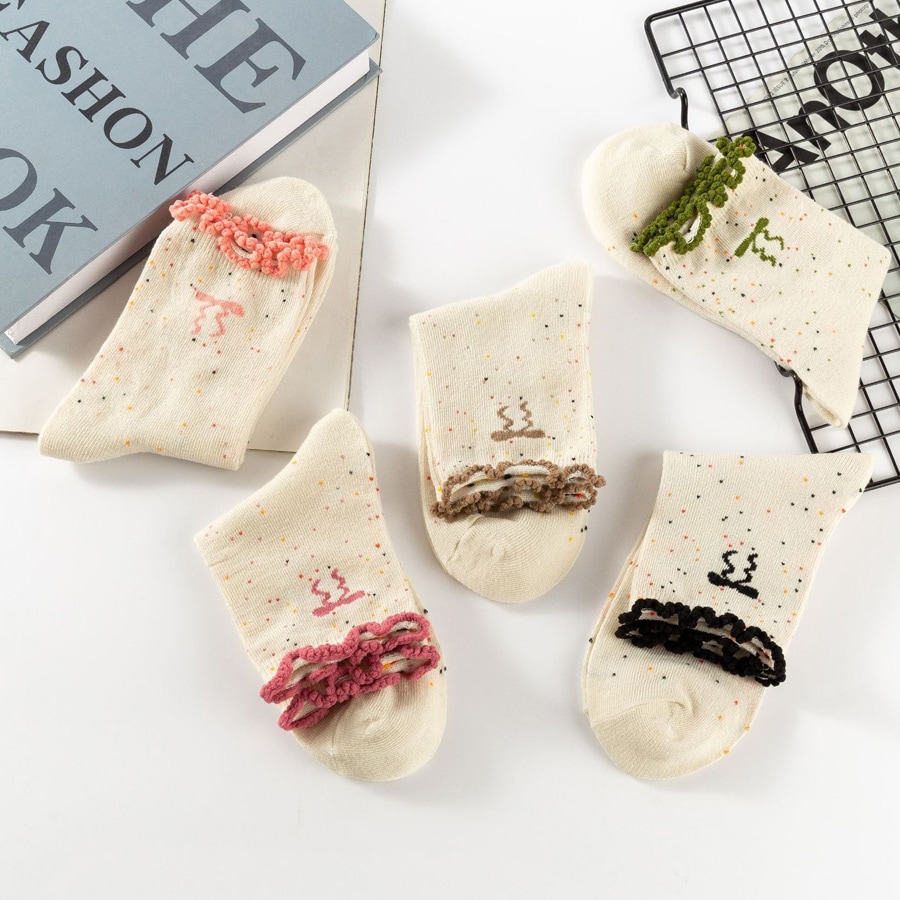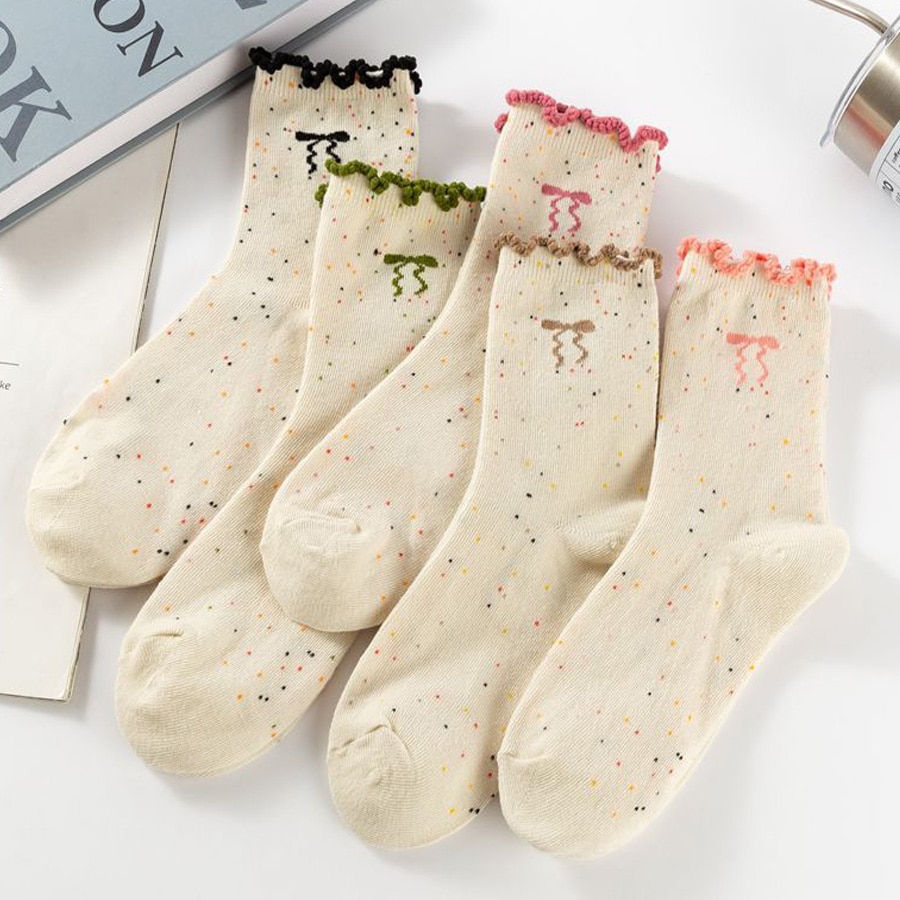 【オレンジ】つぶつぶミックスカラーソックス | カラフルなデザインとリボンがかわいい靴下