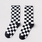 - 【ブラックグレー】ブロックチェック柄ソックス