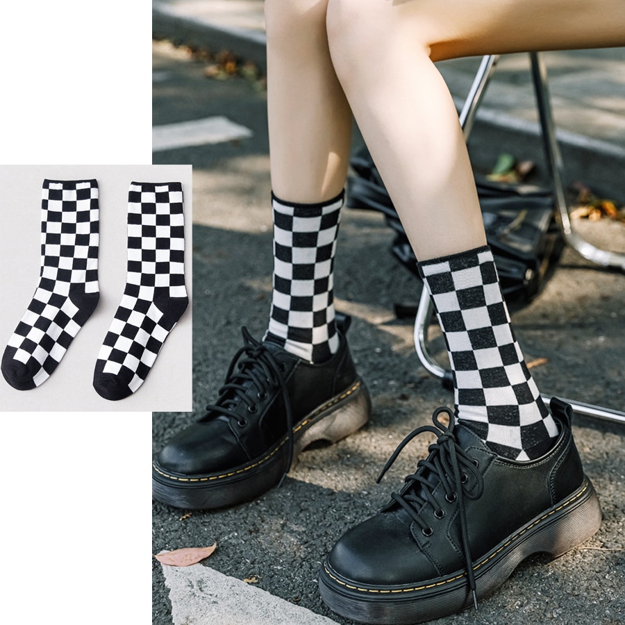 【ブラックグレー】ブロックチェック柄ソックス | ブロックチェック柄のおしゃれな靴下