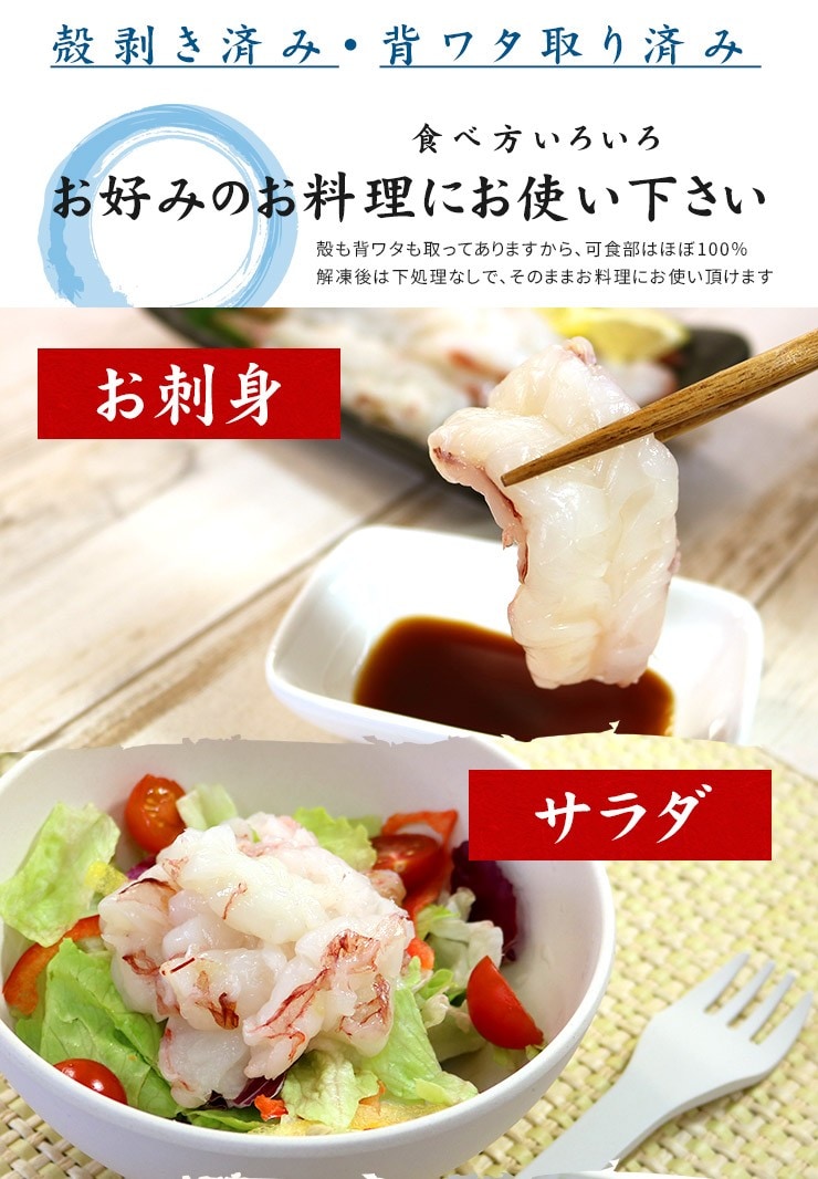【1kg】赤エビむき身 お刺身OK 高鮮度でぷりっぷり!サイズ不揃い[[赤エビ剥き身1kg] | 天然赤エビ1kg!家庭用でも鮮度抜群、殻・背ワタなしの可食部100%。刺身も加熱も甘み絶品