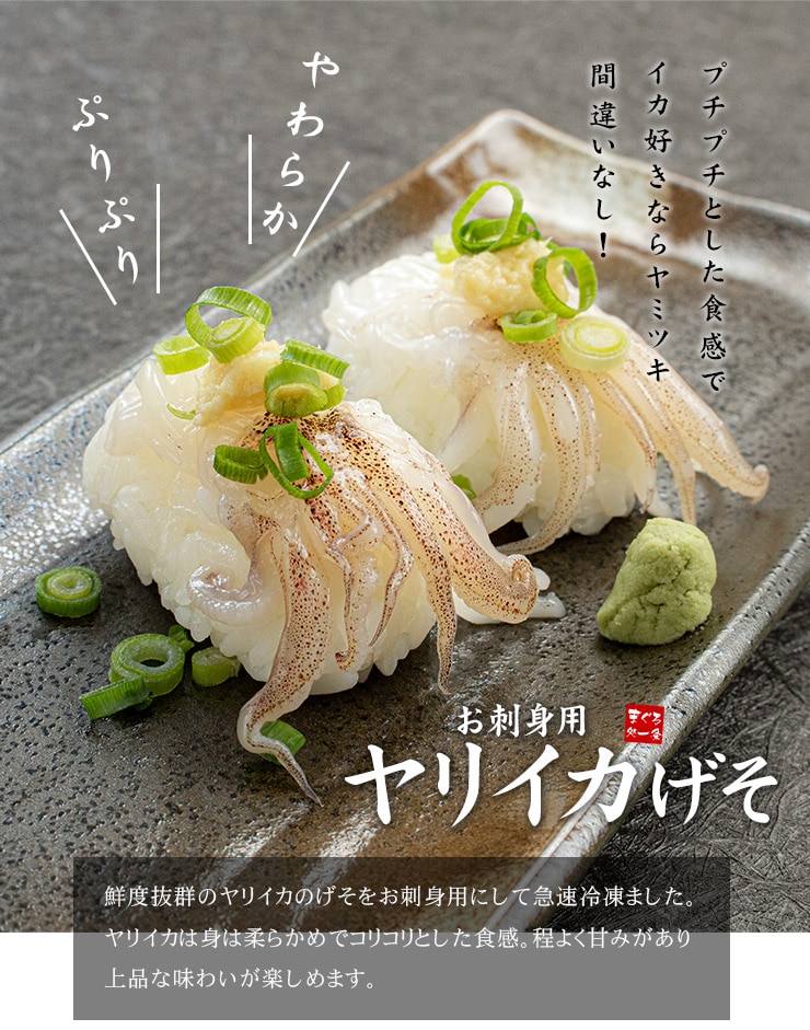 【20枚】ヤリイカげそ お刺身 自然解凍OK[[ヤリイカげそ20枚] | 鮮度抜群ヤリイカゲソ!コリコリ&プチプチ食感と広がる甘み。解凍だけで刺身やバター焼き、唐揚