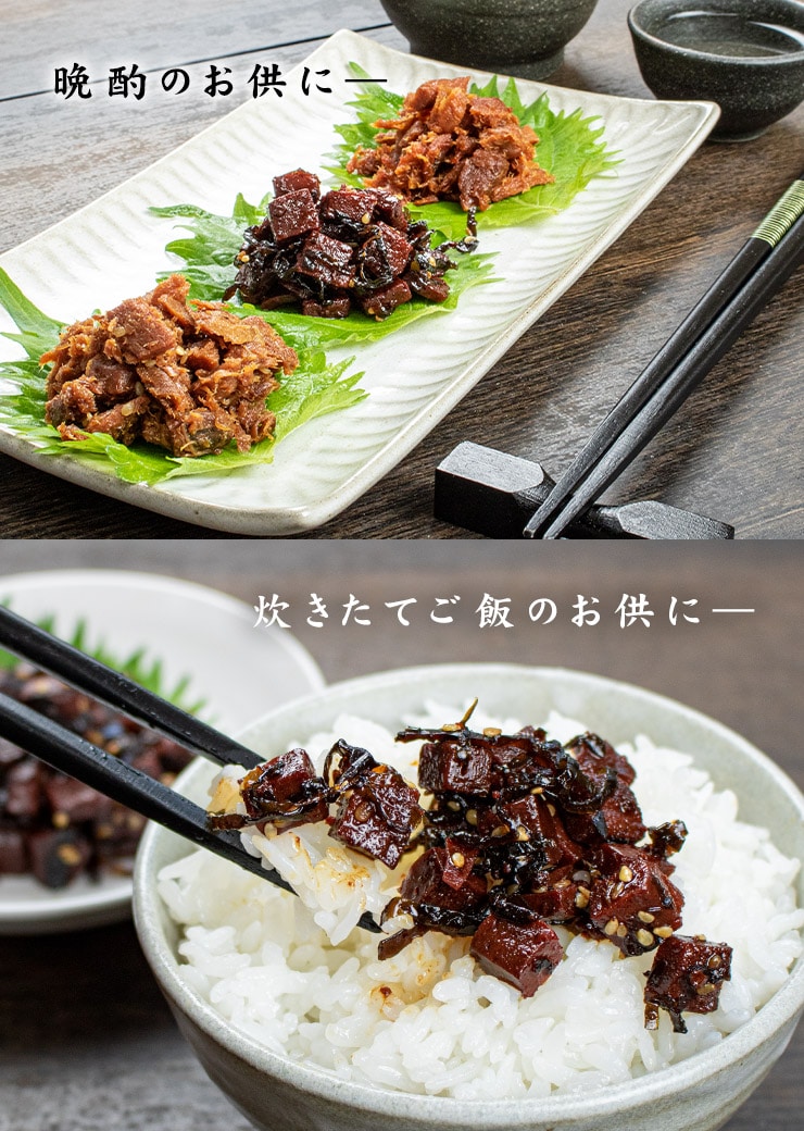 - まぐろうま煮90g、鮪昆布110g、ピリ辛まぐろ90g、あさり佃煮100g、あさり昆布75g