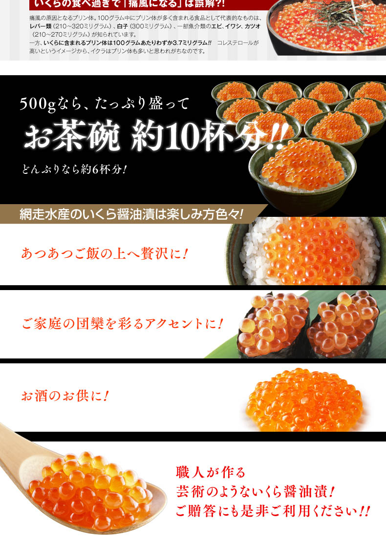北海道オホーツク海産秋鮭 いくら醤油漬 500g×2箱(冷凍・イクラ) | 新鮮な鮭の卵をじっくり漬け込んだ当店自慢のいくらの醤油漬です。