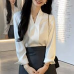 【Mサイズ】Vネックシャツブラウス | 上品でカジュアルにもガーリーにも着こなせるロングシャツブラウス