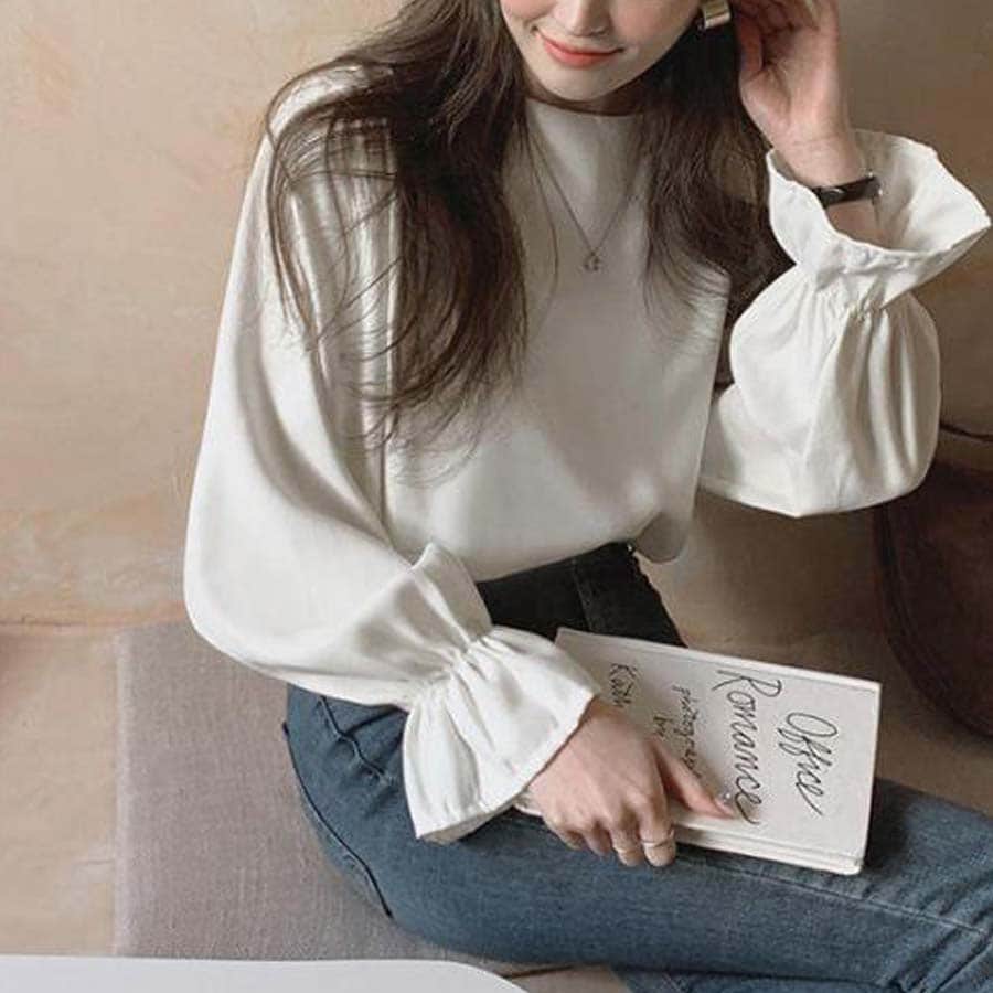 袖口が大人可愛いシャツブラウス。