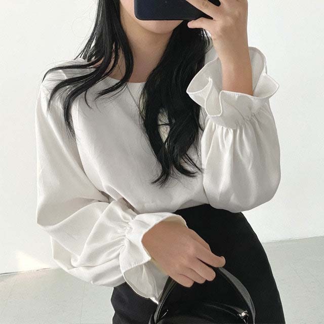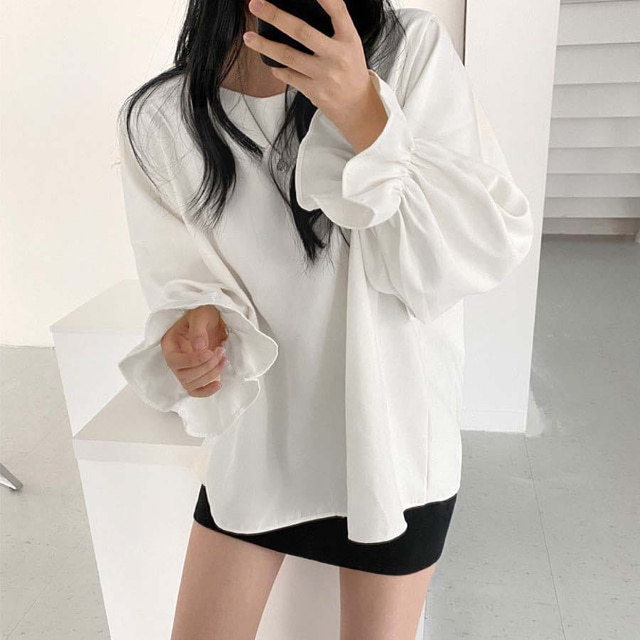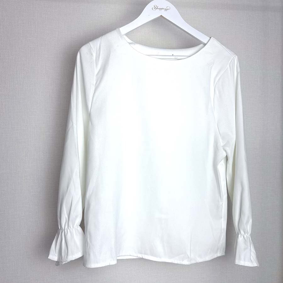 - 【ホワイト/Lサイズ】パフスリーブブラウス