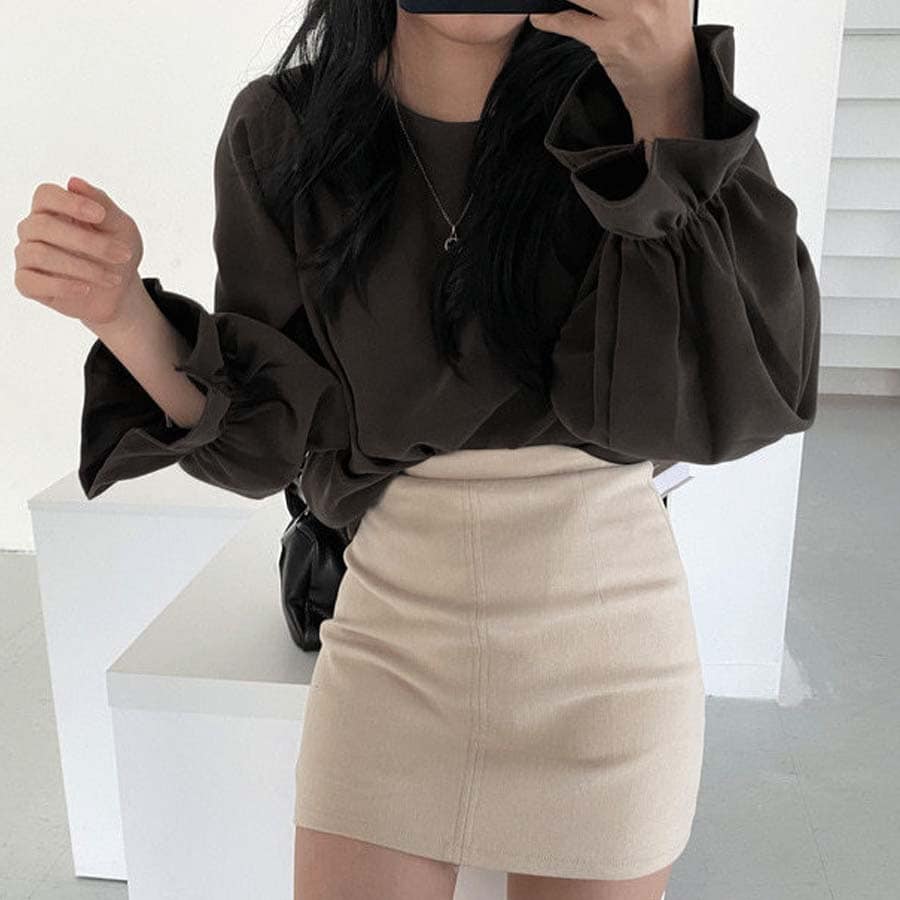 - 【ダークブラウン/Lサイズ】パフスリーブブラウス