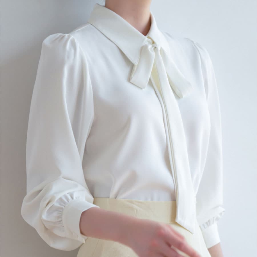 甘さ大人かわいいリボン付きシャツブラウス。