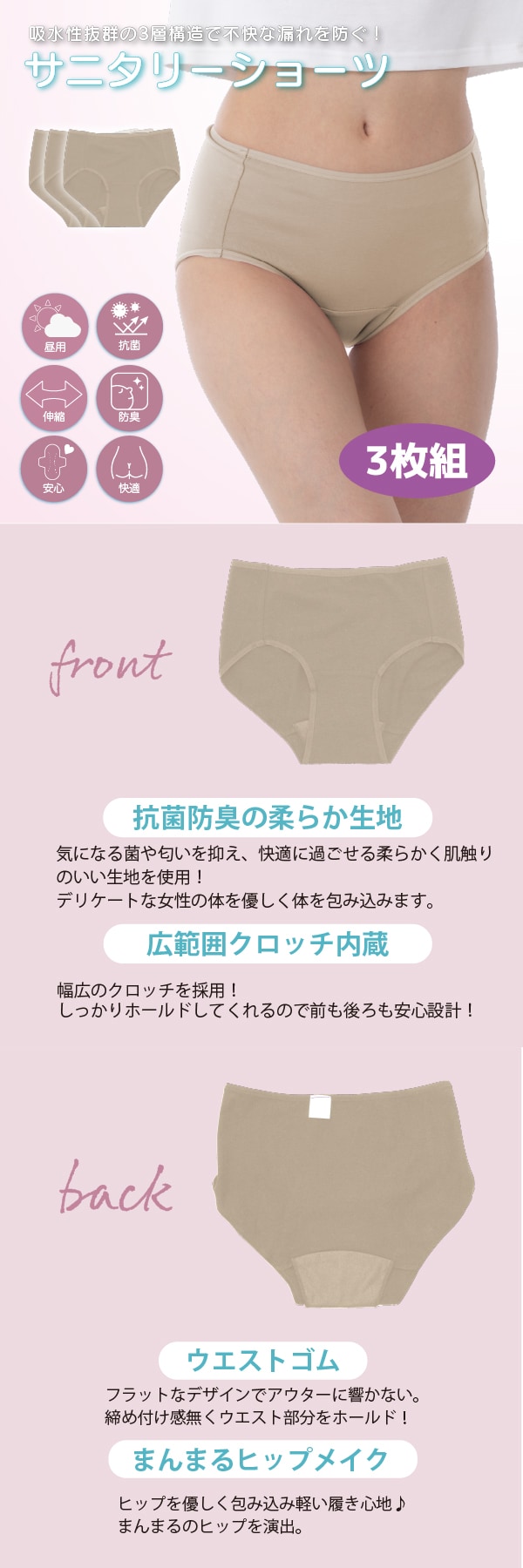 - 【ベージュ/S-M/3枚組】エアーフィットサニタリーハイウエストショーツ