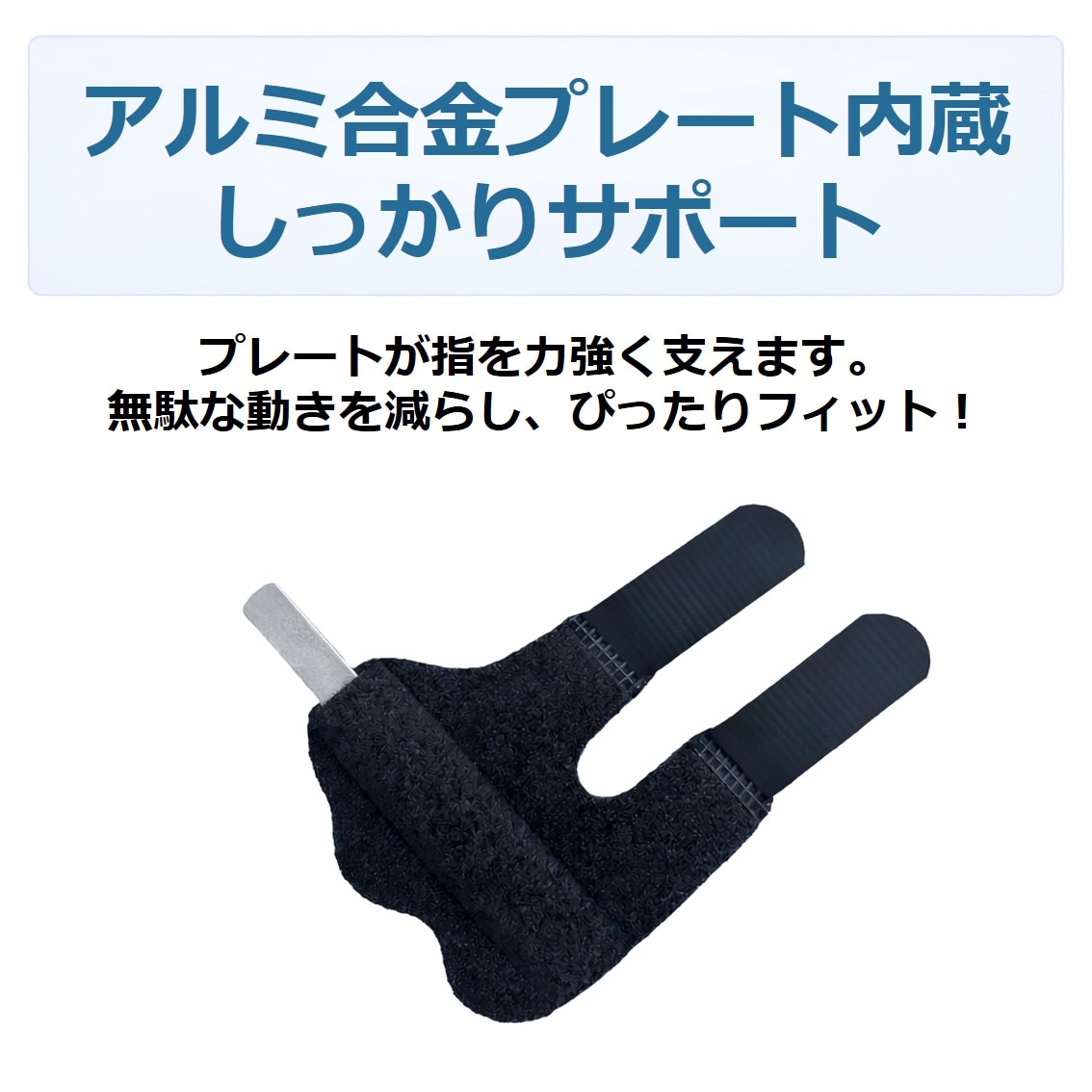 内蔵された金属プレートが指を支え、不意な曲げや衝撃からガードします。