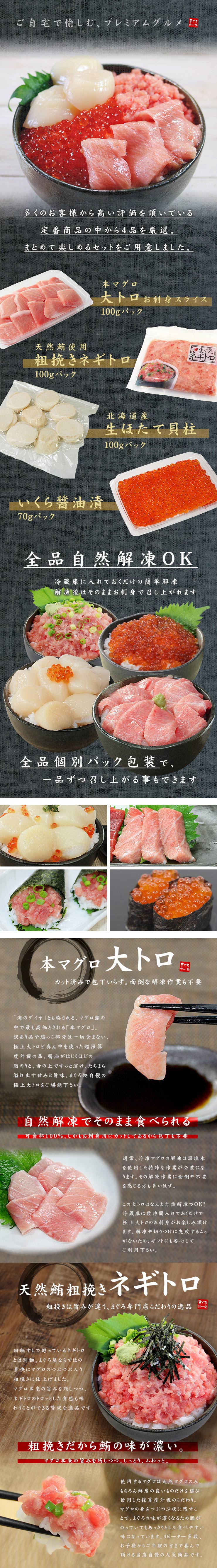 - 【計370g】海鮮四色丼セット マグロ 大トロ ほたて イクラ ネギトロ 刺身[[海鮮四色丼]