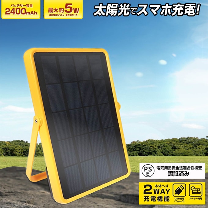 【2個セット】ソーラー&USB充電器 太陽光充電 蓄電機能付 | PSE商品済!ソーラーパネル式で太陽光からスマホを充電!