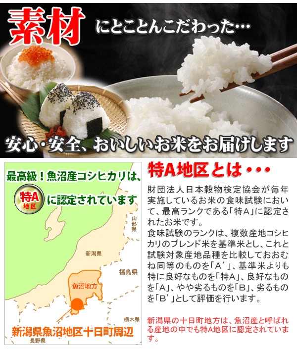 日本の米どころ、新潟県魚沼地方の中でも特A産地に指定されている十日町地区限定米を使用。