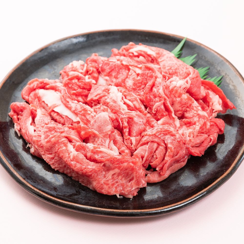 今回お届けするものは、余った部位のブロックを集めてスライス加工したものです。すき焼きやしゃぶしゃぶ、カレー、牛丼の具などでお楽しみください。