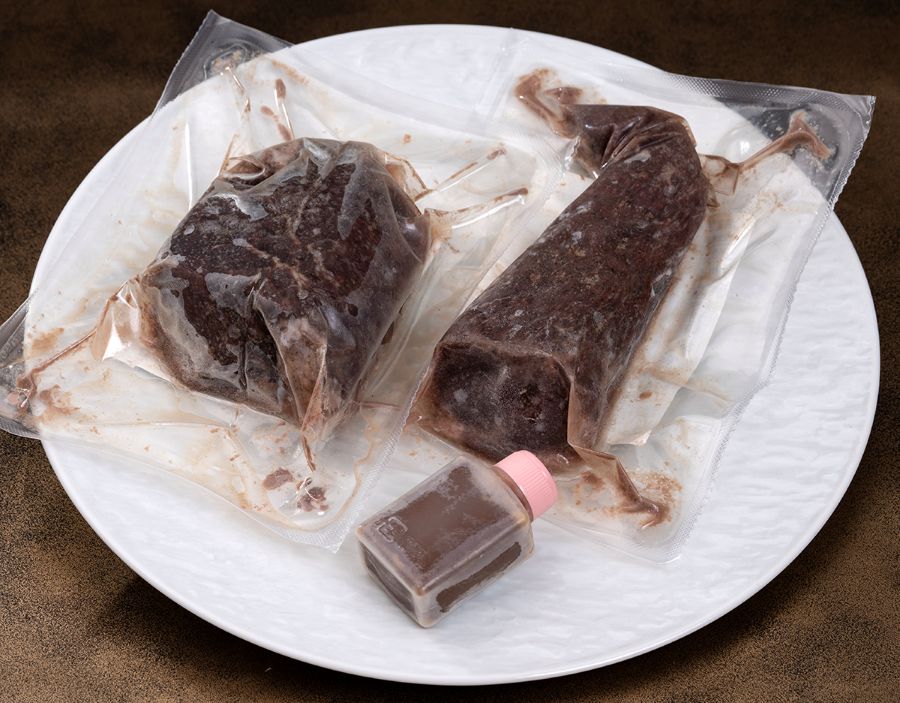 解凍は冷蔵庫で半日程度です。もしくは冷水でゆっくりと解凍してください。お湯に入れるなどの急激な温度変化を加えると、ドリップと呼ばれる旨味が含まれる液体が流れ出し、パサパサとした悪い食味になってしまう場合があります。