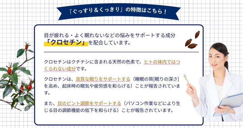 クロセチンは、良質な眠りをサポートする(睡眠の質(眠りの深さ)を高め、起床時の眠気や疲労感を和らげる)ことが報告されています。