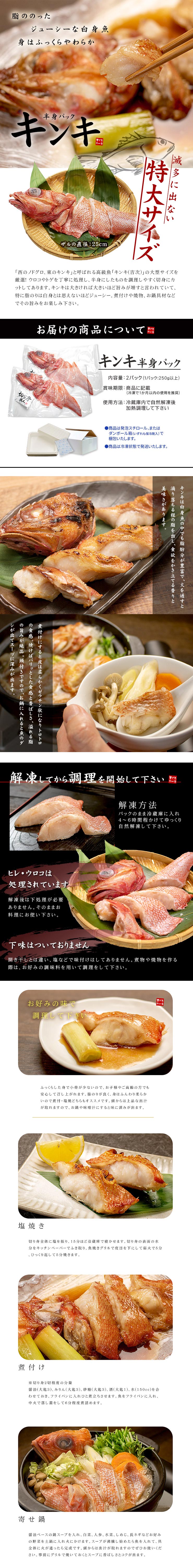 【250g以上×2パック】特大 キンキ半身 [[特大キンキ半身-2p] | 脂ののった高級魚、身はジューシーでふっくら!煮物、塩焼、お鍋に。