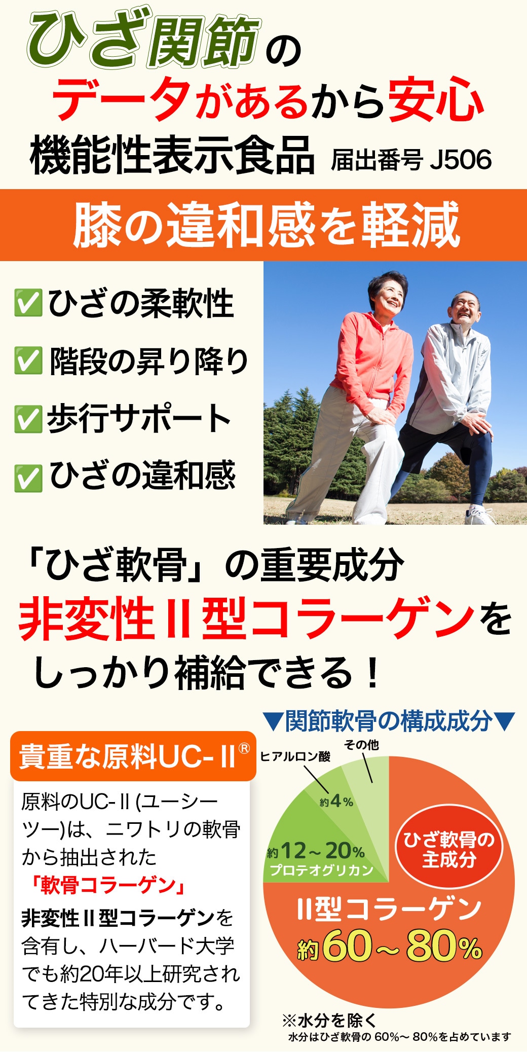 【機能性関与成分】 非変性2型コラーゲン(酵素分解水溶化コラーゲンペプチドとして) 2.4mg