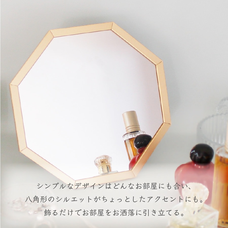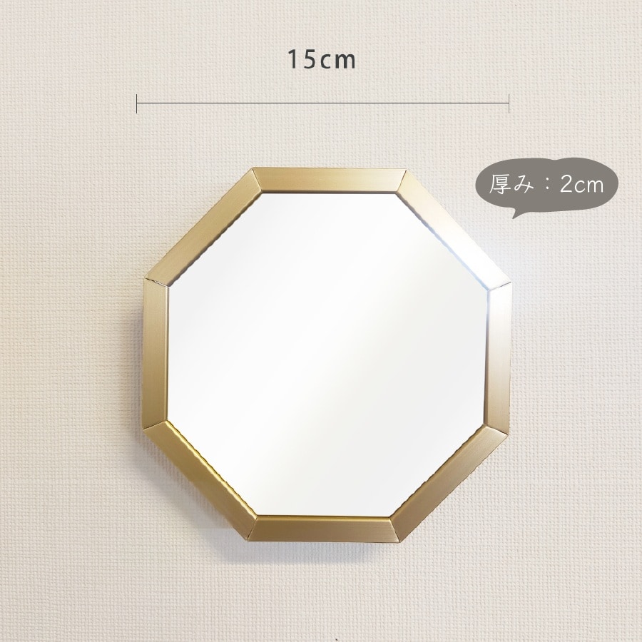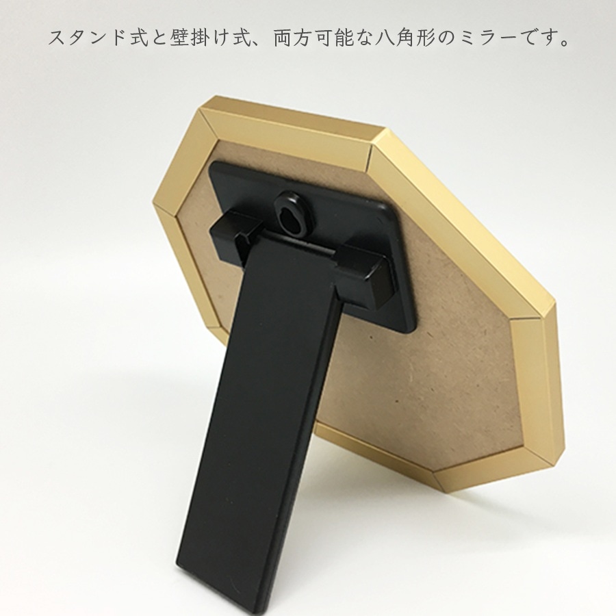 【ゴールド】オクタム スタンドミラーSS | スタンド式と壁掛け式、両方可能な八角形のミラー。
