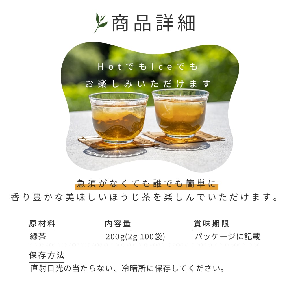 - ・ほうじ茶ティーバッグ 2g 100袋入り 3袋 計600g