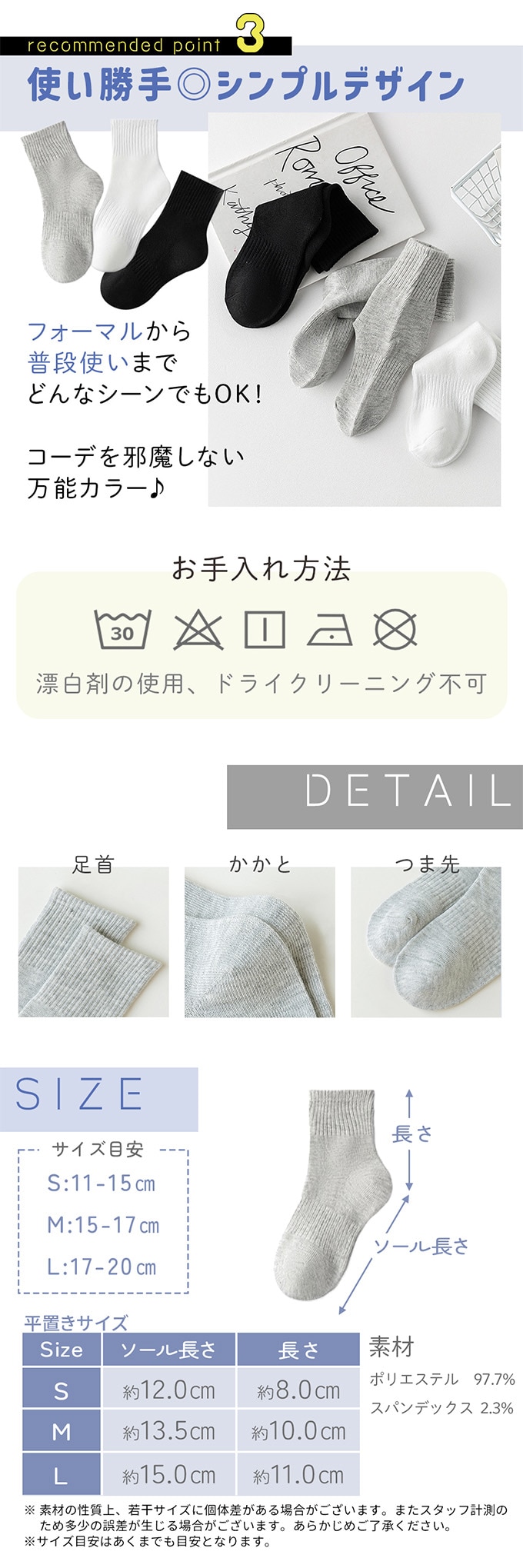 [ホワイト/S(11~15cm)] 子供用スクールソックス【5足セット】 | フィット感バツグンの厚手ソックス 洗い替えに便利な5足セット